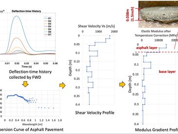 Our team proposes an innovative Dispersion Curve Method to analyze FWD data to simultaneously determine the highway pavement modulus gradient and layer thickness.